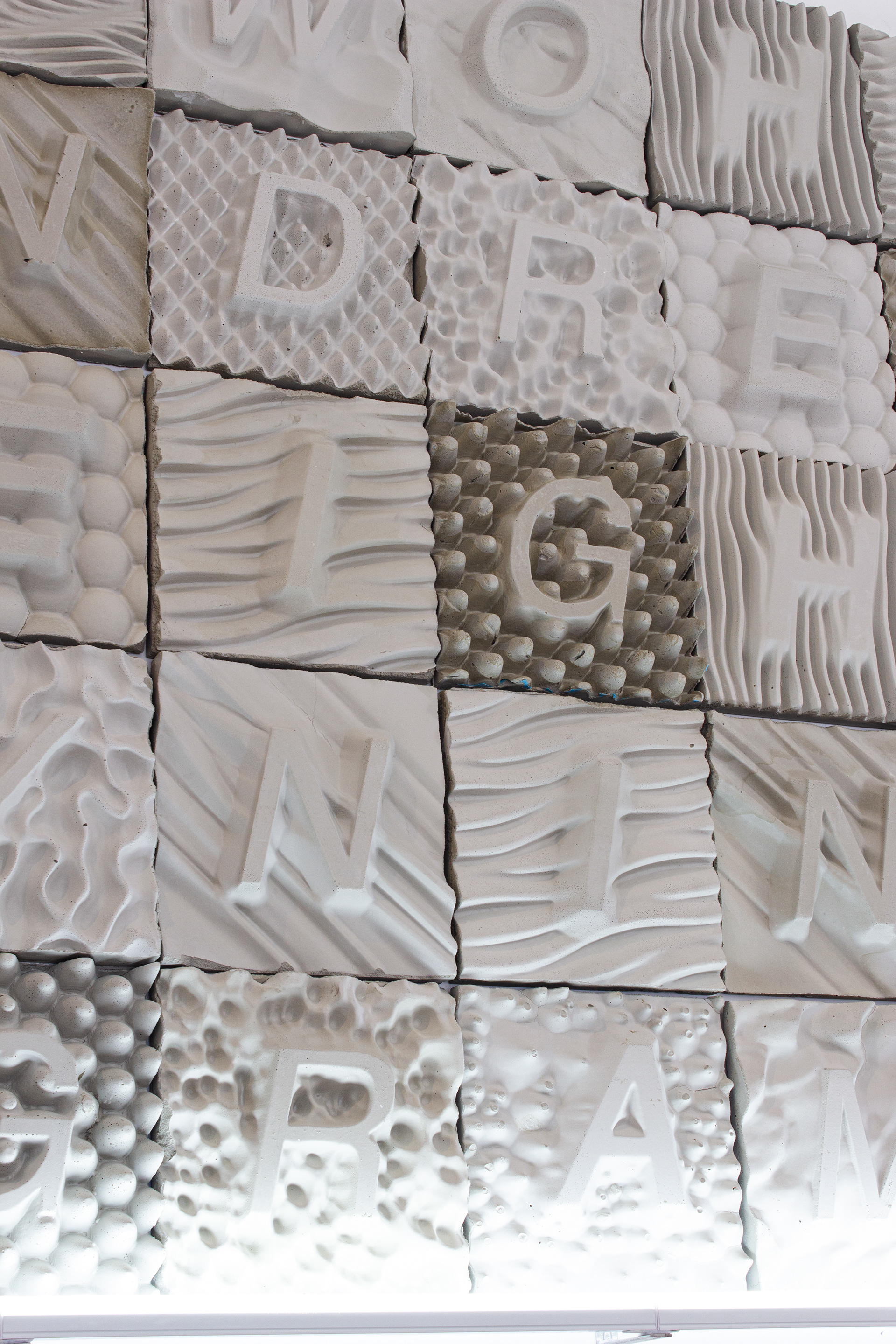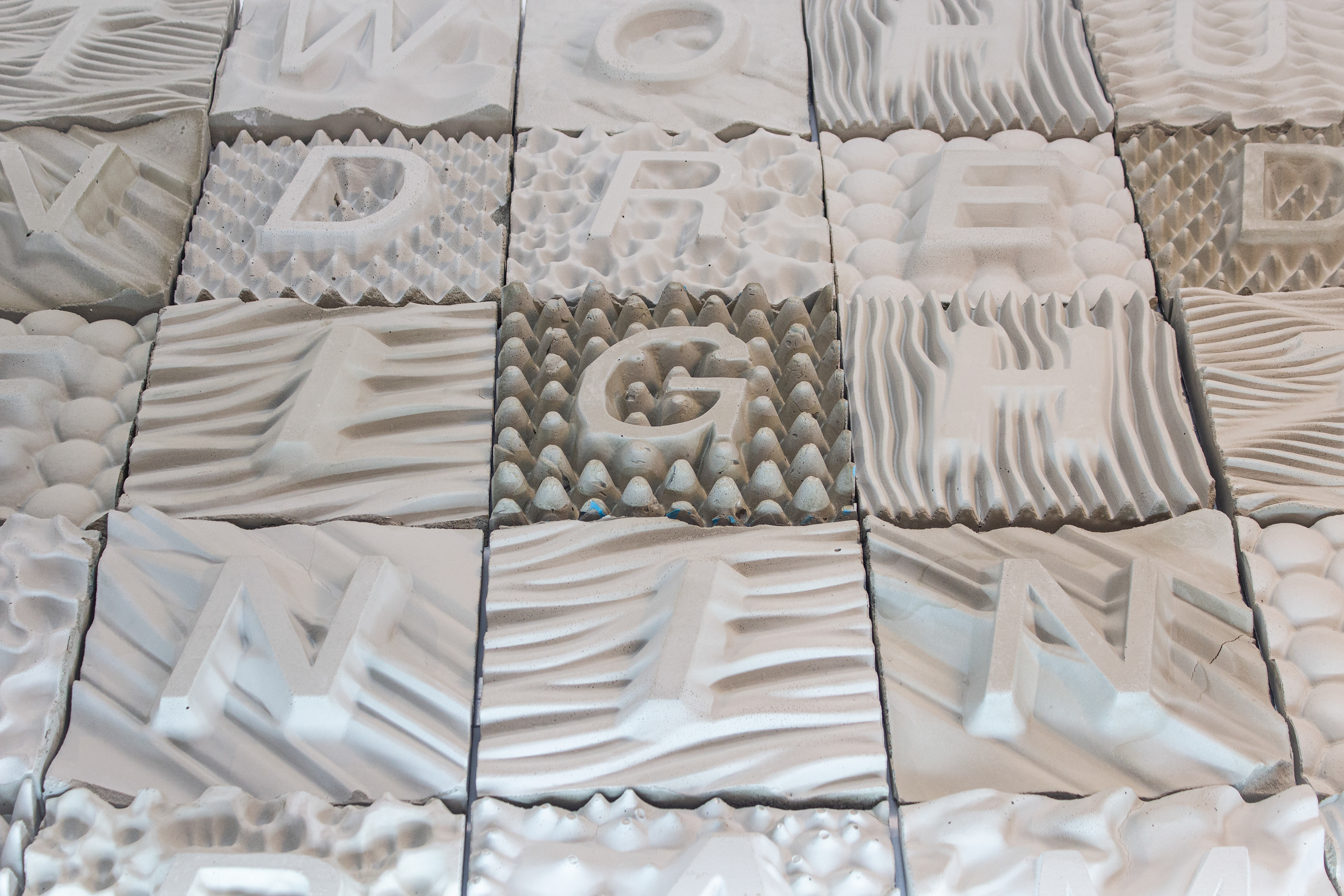 The Word Search Series investigates concepts of contradiction and loss of meaning through the use of a single sculpture made from many individual sculptures. Each viewer is invited to excavate the hidden poem(s).