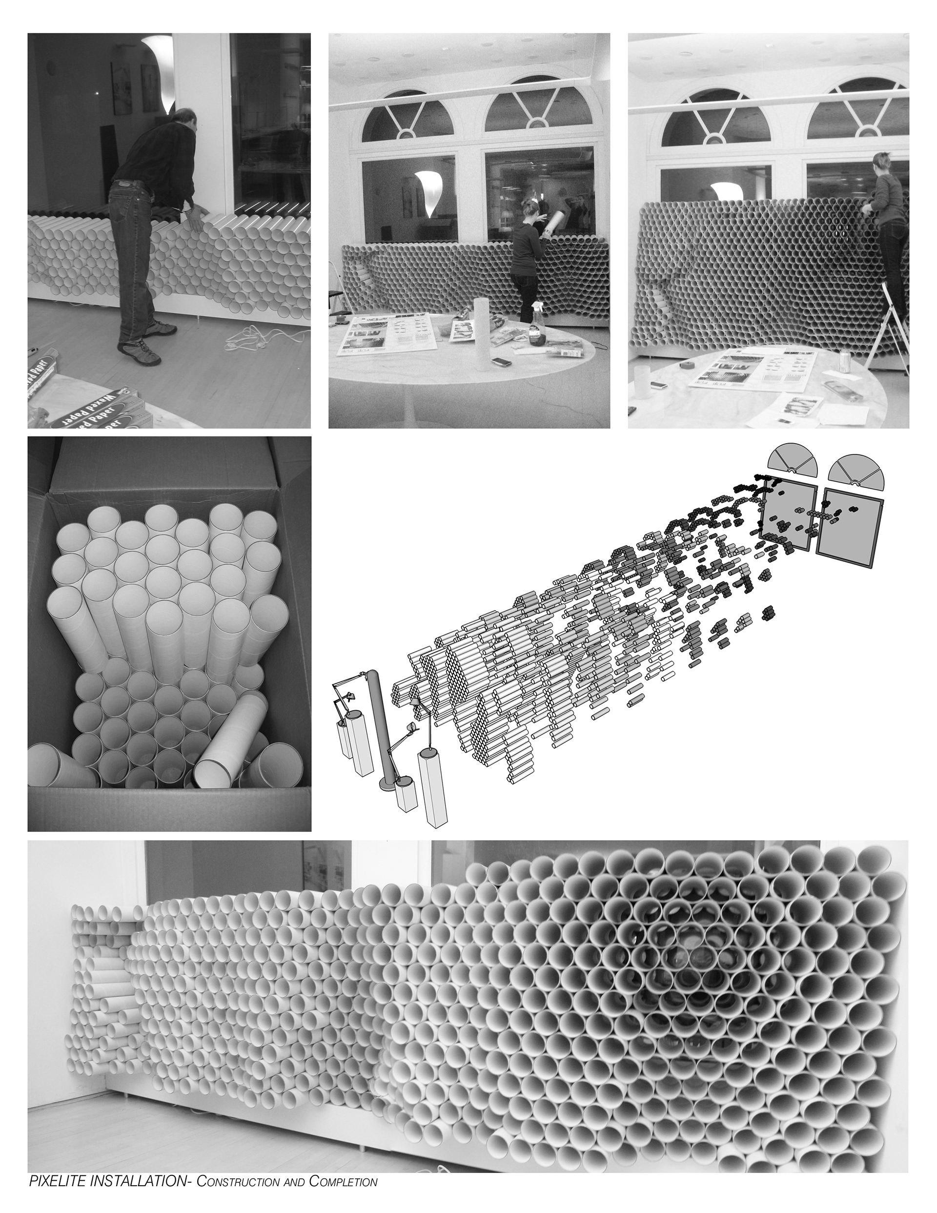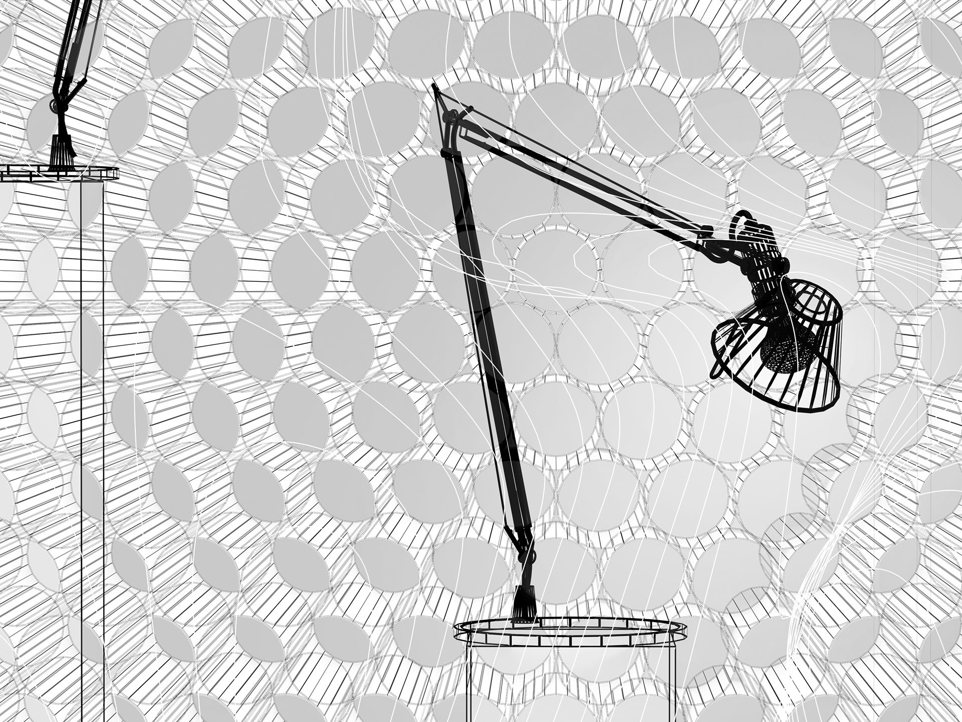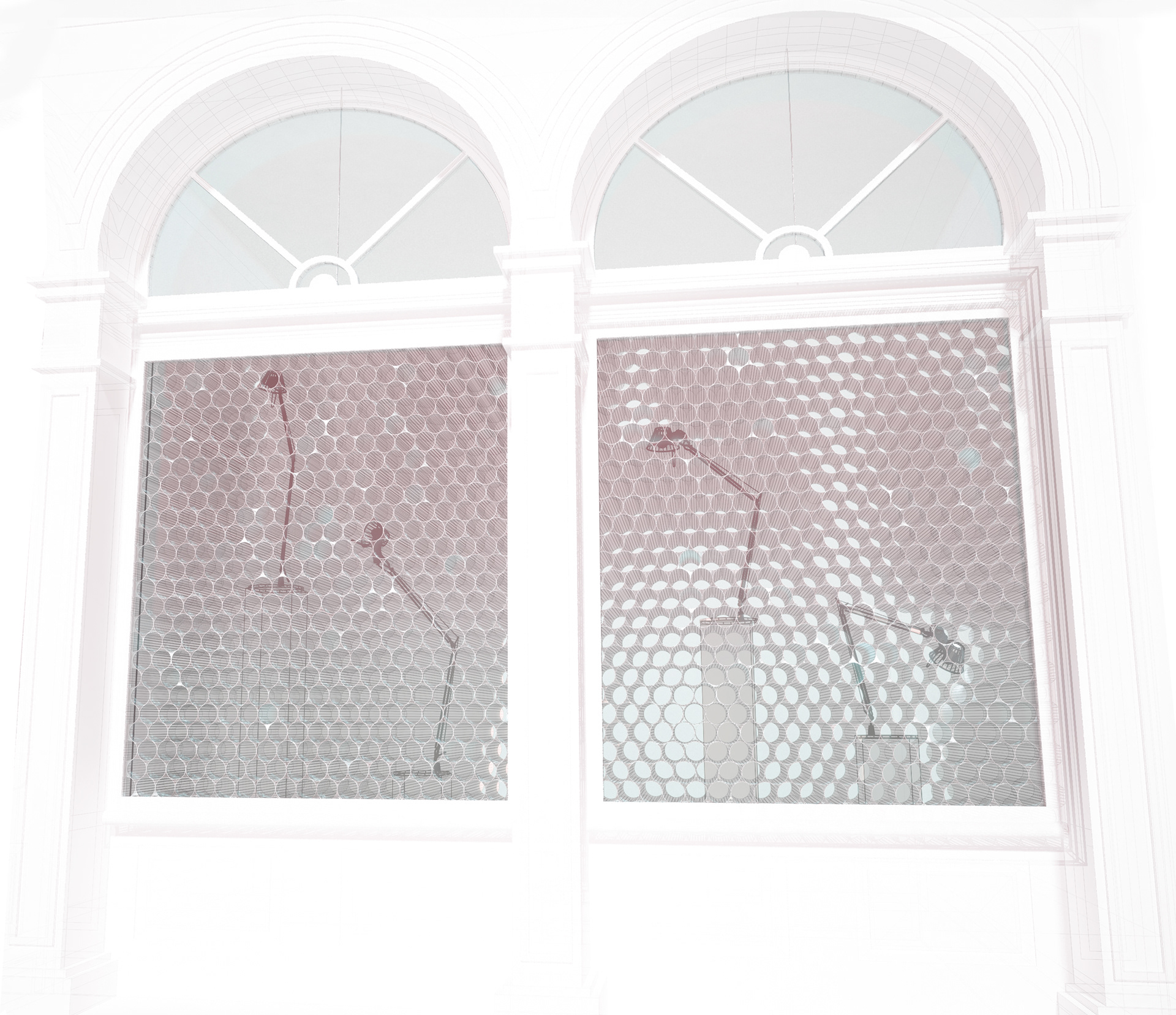 An installation within the Philadelphia Artemide lighting showroom that conforms to the design of the Tolemeo classic lamp, converting light into a pixelated screen.