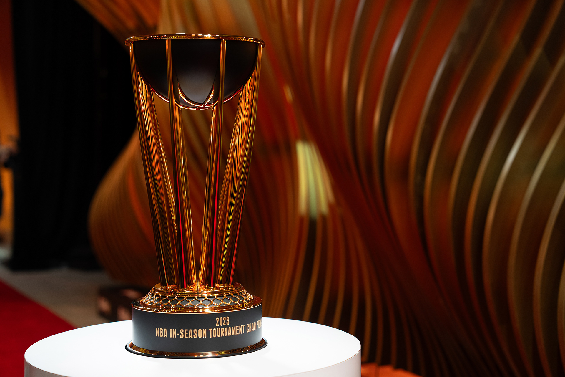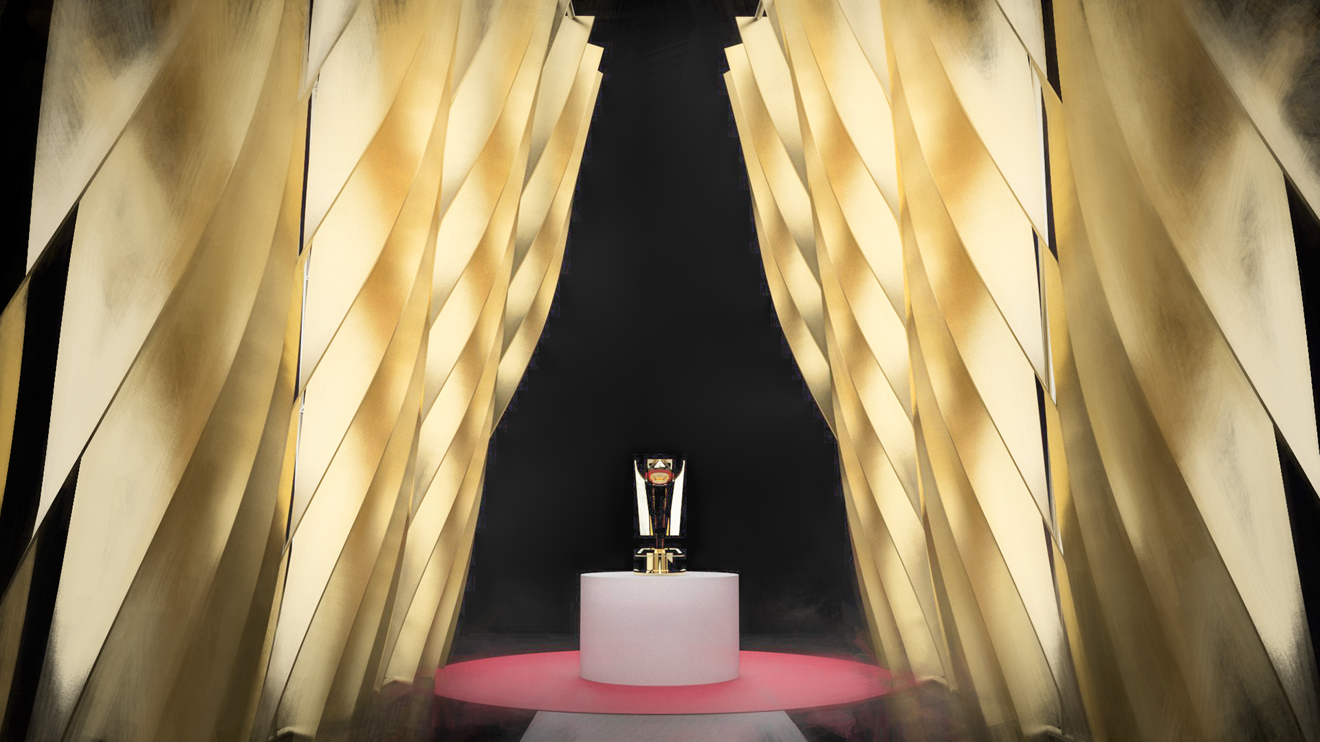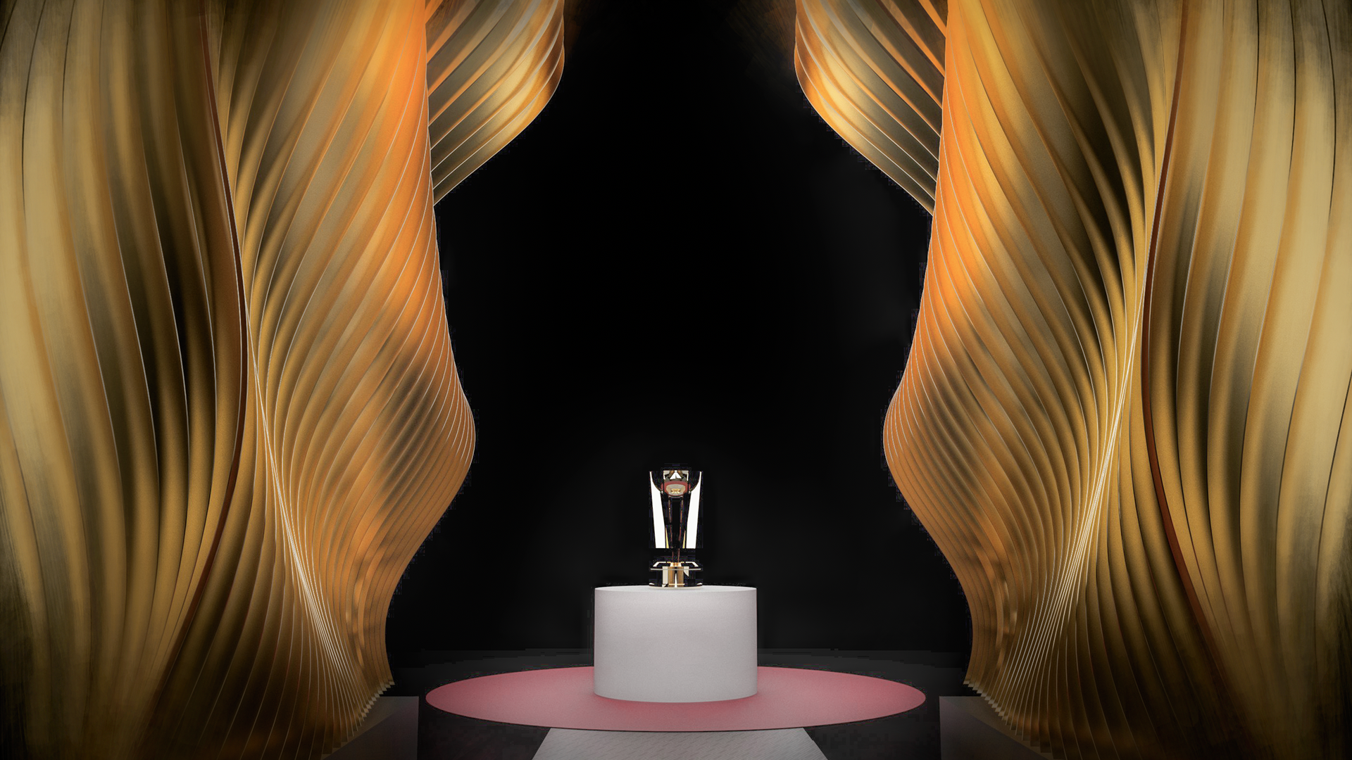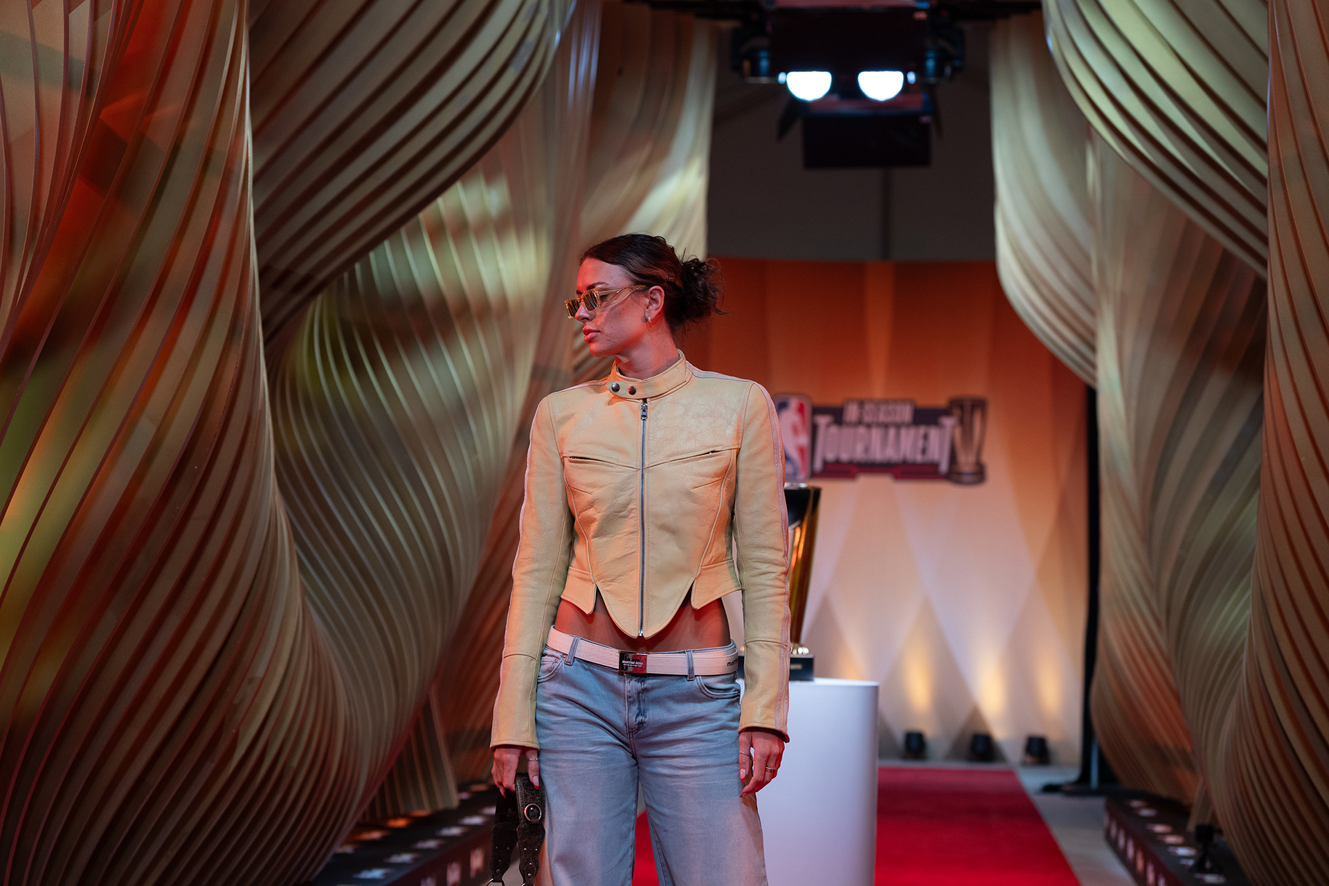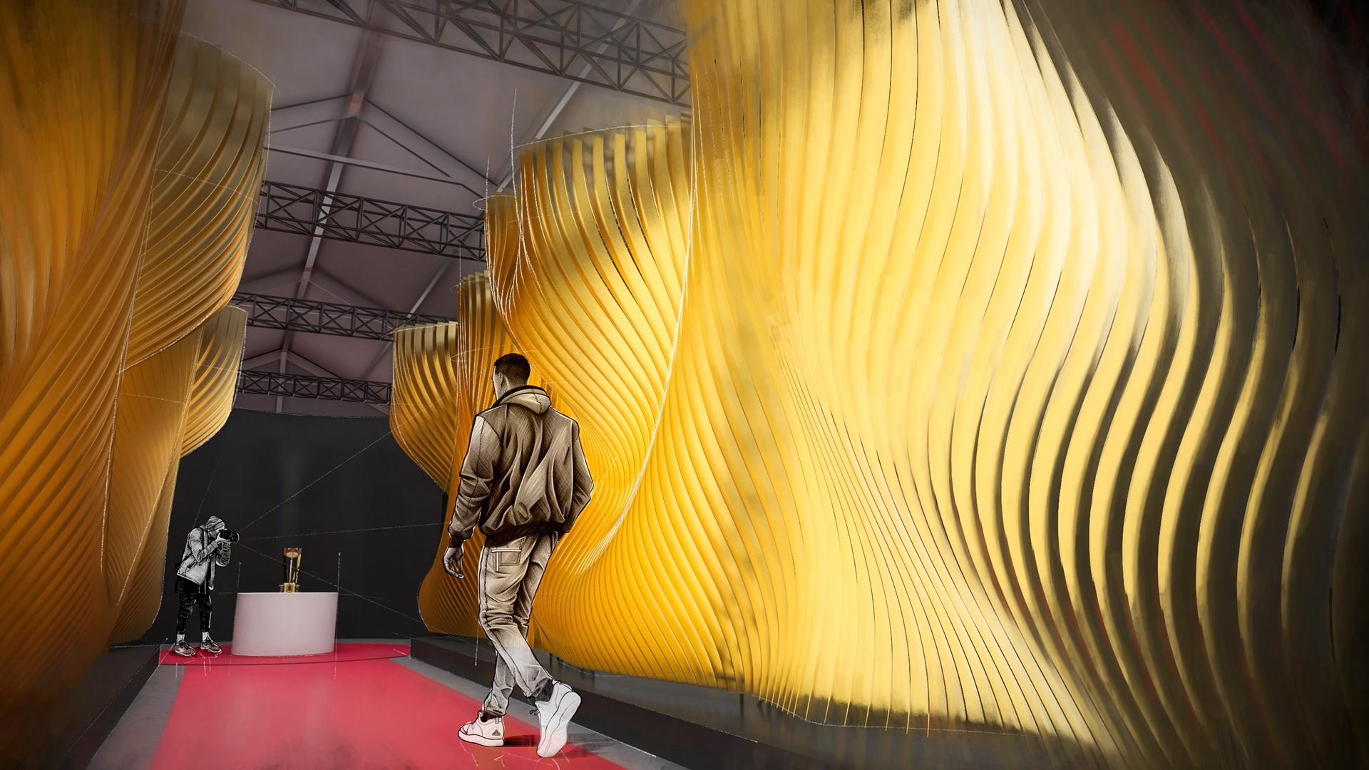 Akin to the swoosh of a net during a perfect shot, our installation captures the grace and dynamism of the sport. The powerful impact of a basketball, a singular moment of intensity, is translated into a tangible, structural force that resonates throughout the installation. This force creates a ripple effect, an undulating cascade of energy, which emanates from the trophy at the heart of the runway and leaves an indelible mark on its form, shaping an unparalleled runway experience that seamlessly merges the worlds of sports and fashion.