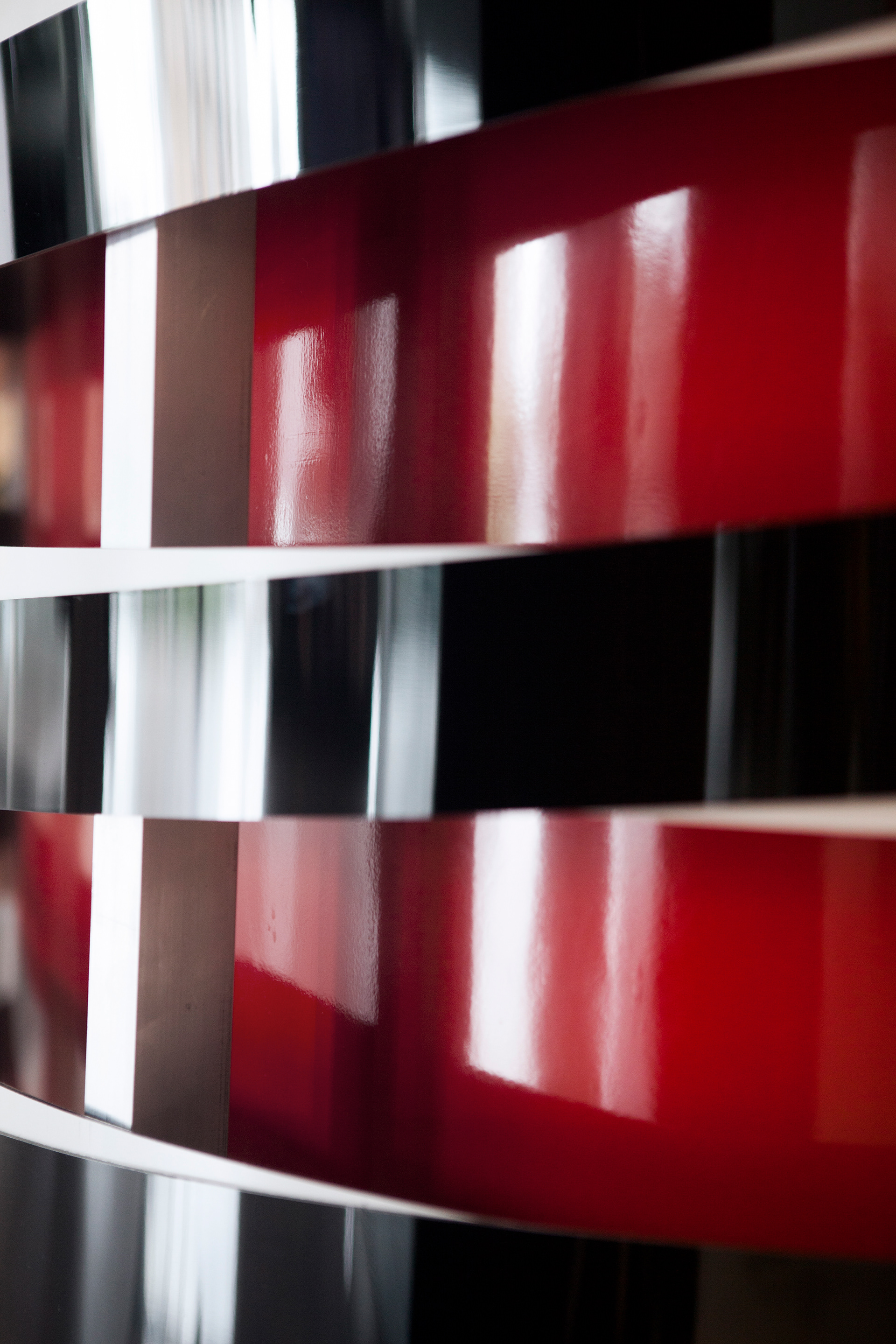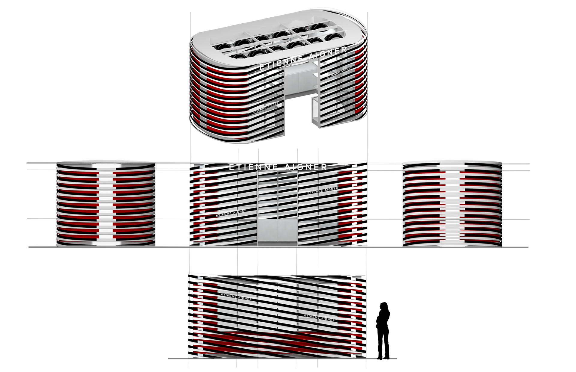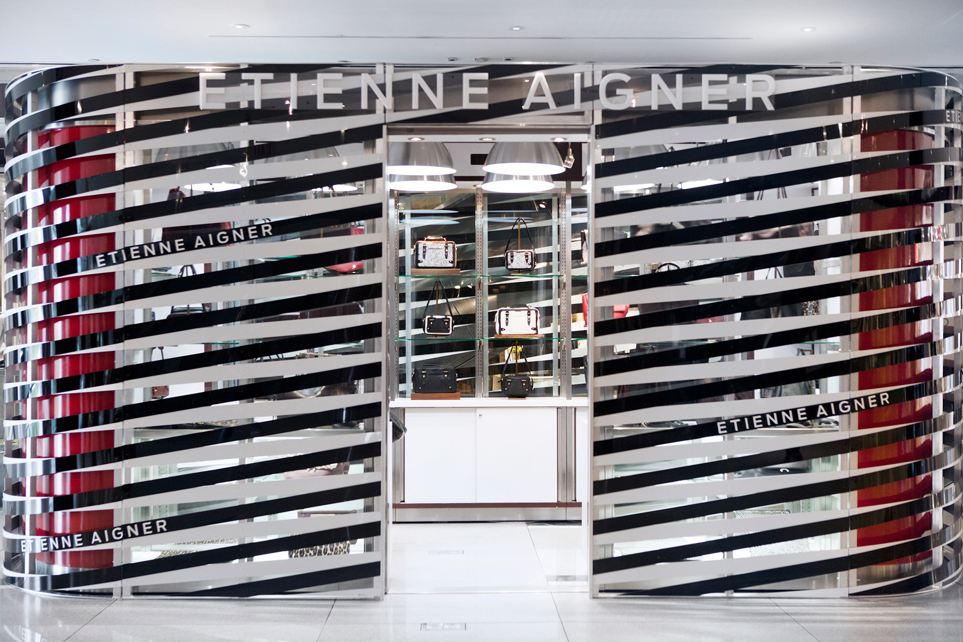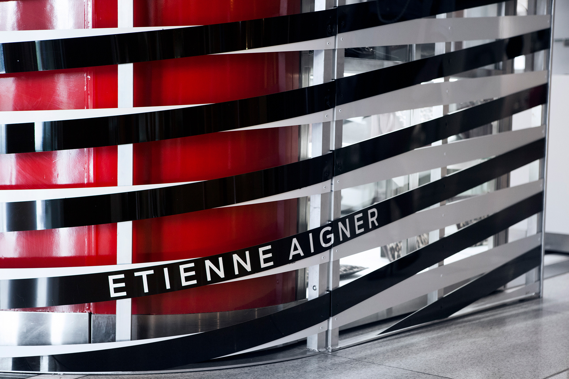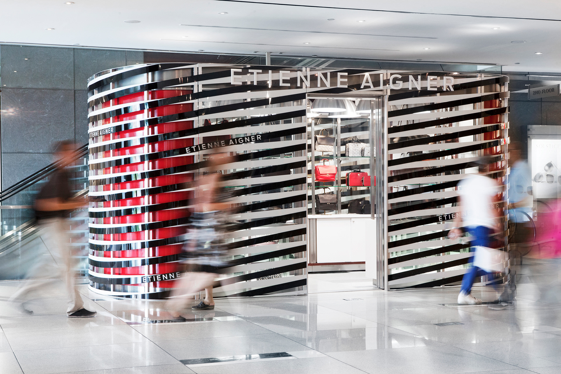 A small concept retail space in Time Warner Center, featuring a layered custom aluminum skin on a refinished existing unit. The skin was developed with parametric tools to create a screen that redefined the exterior, revealing product through strategically placed openings.